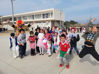 Enguany a l'escola hem pogut dur la disfressa que hem volgut, ha estat molt divertit veure com hem pogut disfressar-mos del personatge que més ganes ens feia. Hi havien companys/es que han dedicat molt de temps a pensar, fabricar i pintar-se la cara. També hem fet una Rua pel port i després de pati ha vengut un grup d'animació. Aquí teniu una mostra...